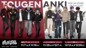 「漆原侑来」先生による人気漫画を原作としたTVアニメ「桃源暗鬼」× ミートマのポップアップストアが、神奈川/京都/福岡にて2025年11月7日〜12月28日まで開催される。アニメ「桃源暗鬼」ポップアップストアでは、『オフのひととき』がテーマの描き下ろしイラストを使用したグッズが登場!