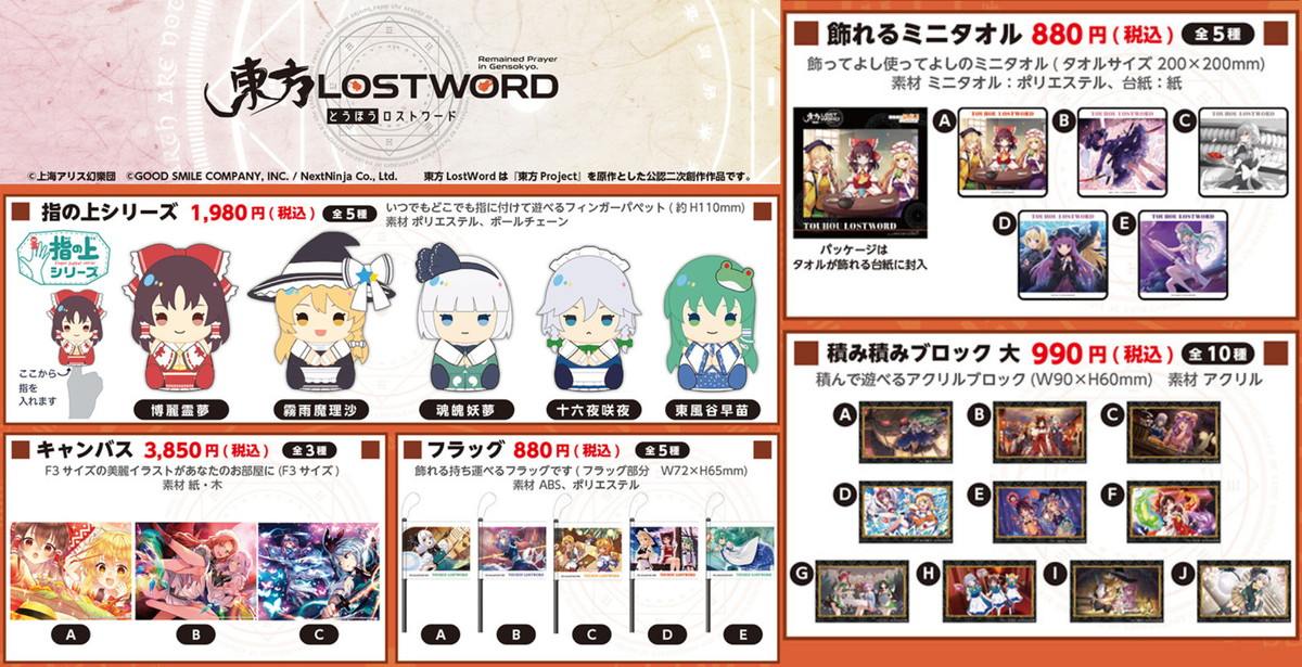 東方ロストワード 霊夢・魔理沙・妖夢ら「指の上シリーズ」など人気再販グッズのラインナップ