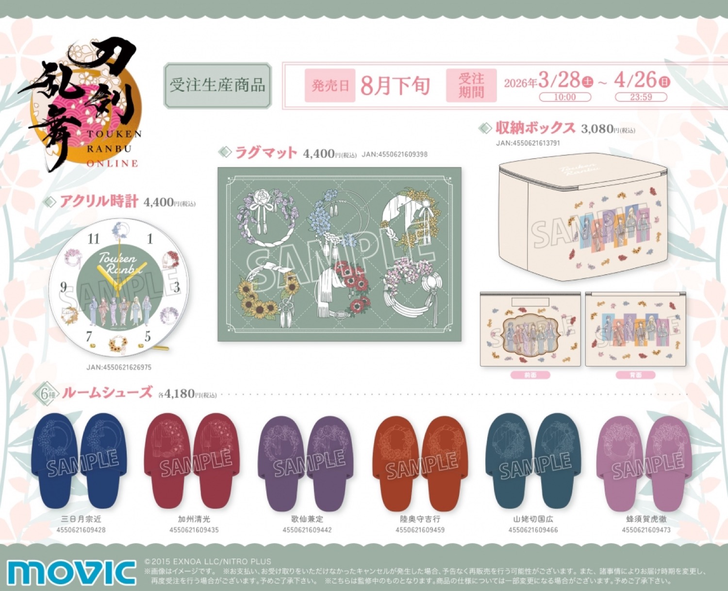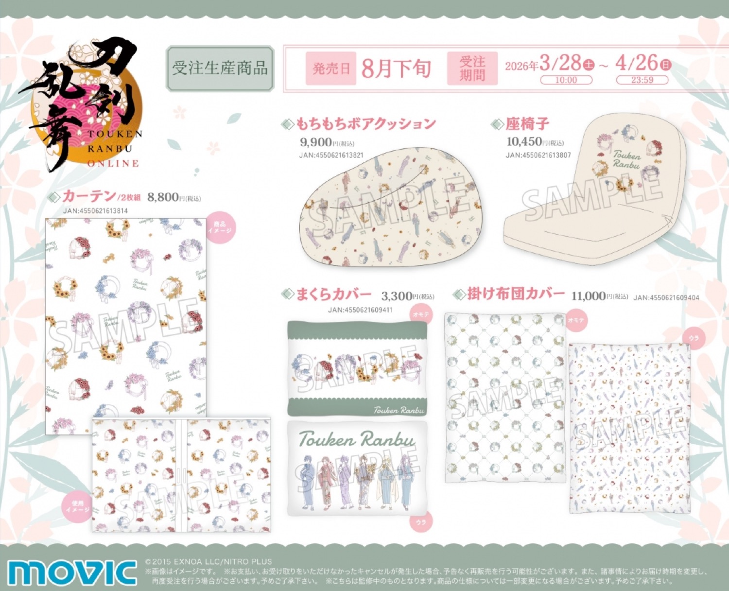 4月4日から19日までは池袋本店・仙台店・札幌店・広島店・横浜ビブレ店・梅田店・新宿店にて、インテリア商品を見てご予約できる『刀剣乱舞ONLINE 審神者の日フェア 2026 ショールーム』が開催。ショールームでは、ライフスタイルブランド「Toffy」とのコラボ商品が展開される。