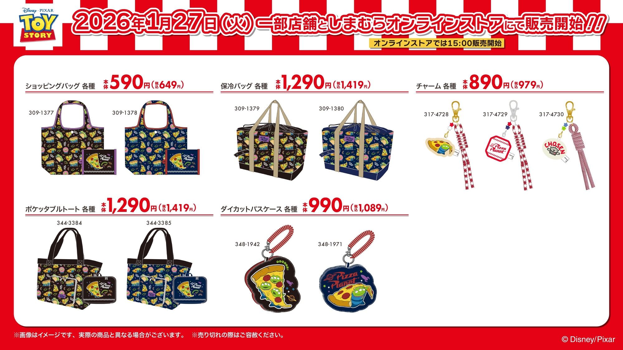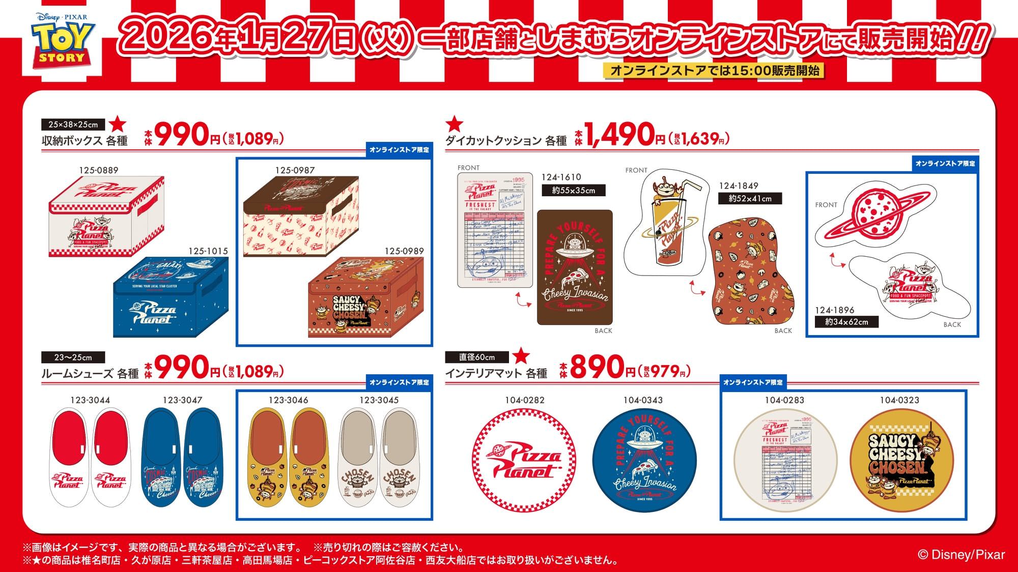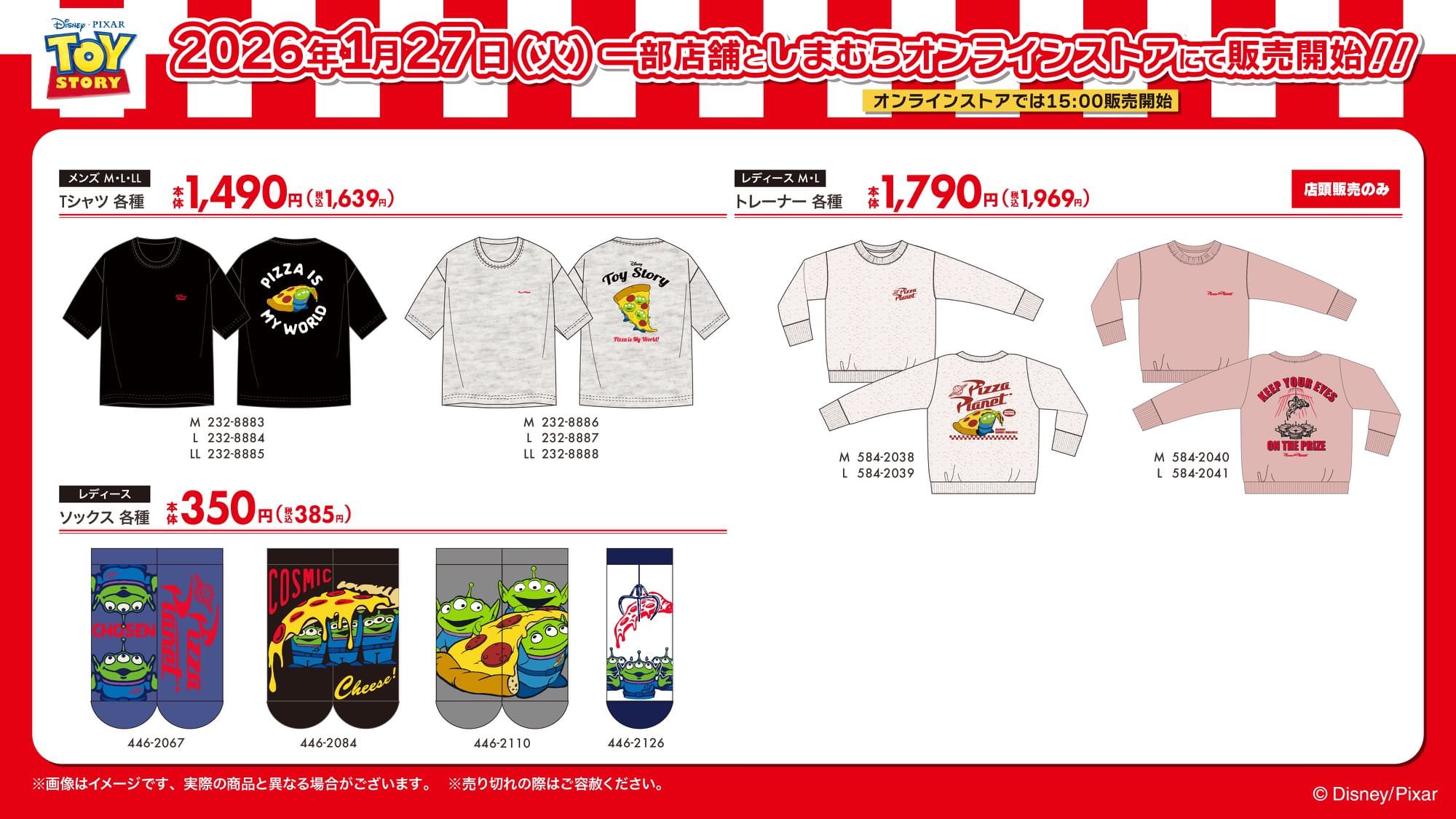 1/27(火)一部のしまむら店舗にて『トイ・ストーリー』の「ピザ・プラネット」デザインのアイテムが登場!