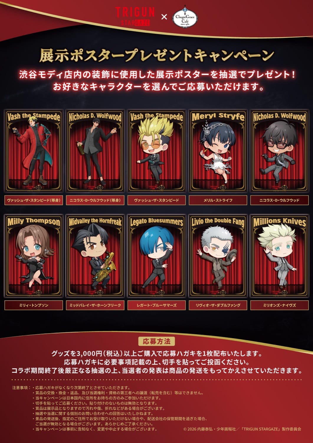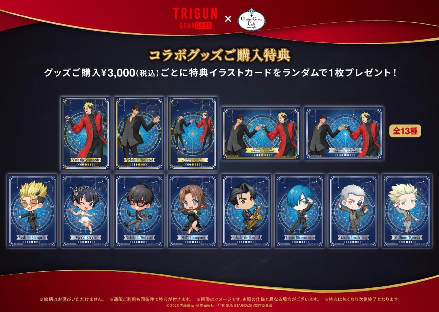 TRIGUN STARGAZE × Chugai Grace Cafe渋谷/大阪のノベルティー