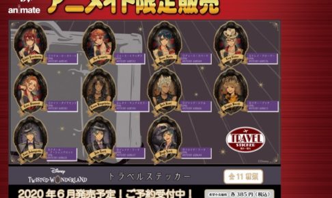 2020年5月18日より「ツイステウエハース」販売も控えているディズニー&アニプレックスが贈る「ヴィランズ(悪役たち)」の真の姿を描いたスマホ向け人気ゲーム「ツイステッドワンダーランド (ツイステ)」に登場するキャラクター達が描かれた「トラベルステッカー」がアニメイト限定で予約受付中!