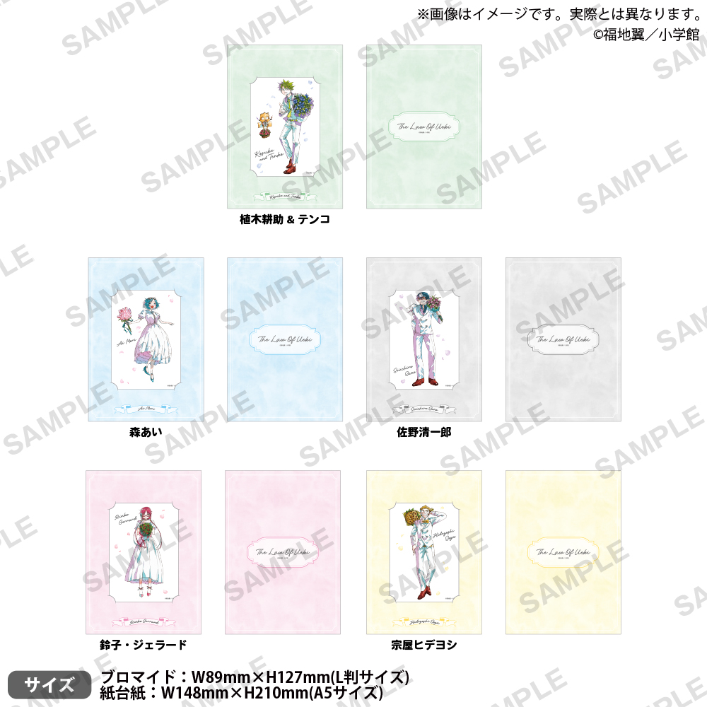 「うえきの法則」ポップアップストアにて、グッズをお買い上げ2,200円毎に特典として「イラストカード 全5種」がランダムに1枚プレゼントされる。