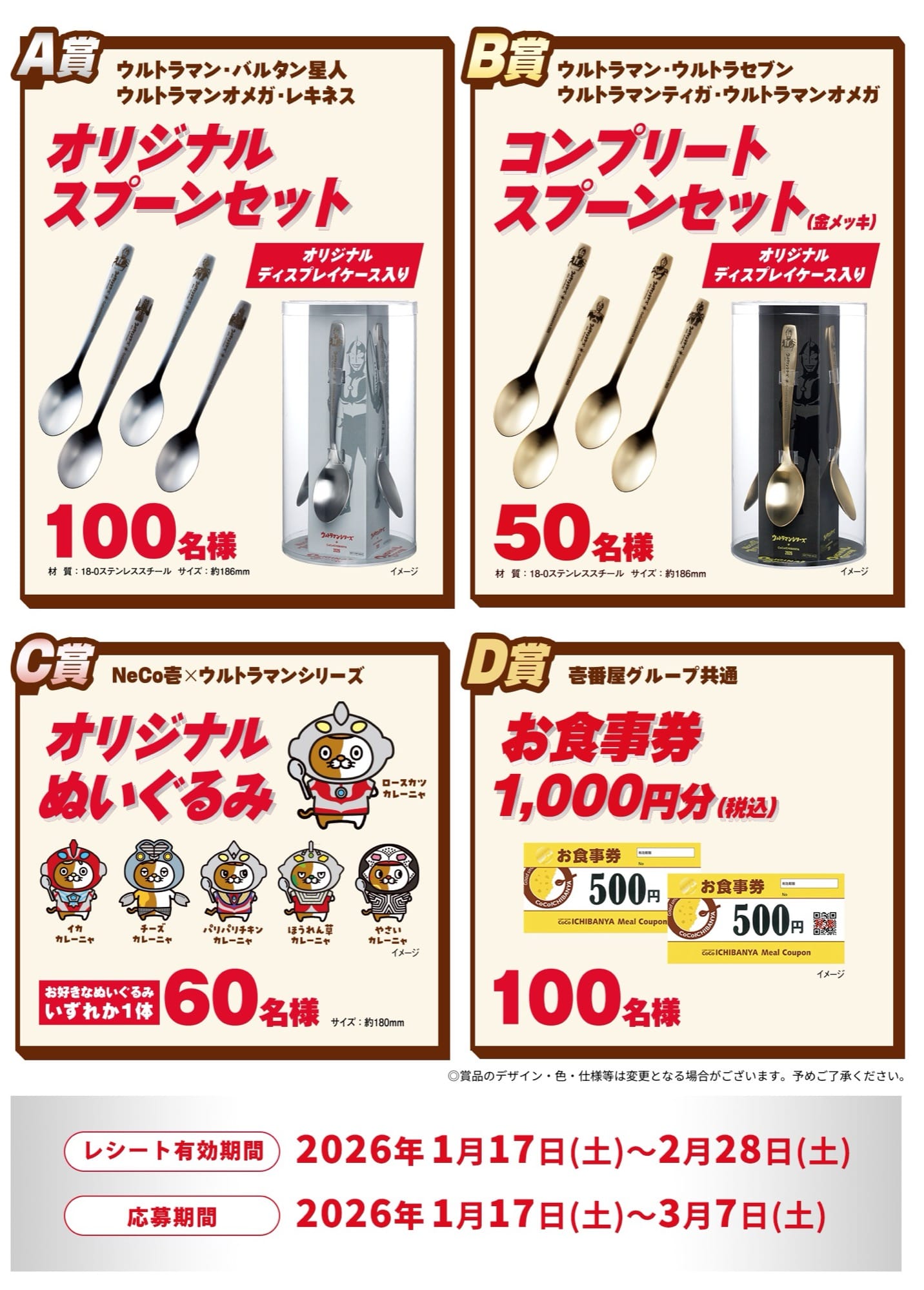円谷プロが贈る、日本を代表する特撮ヒーロー「ウルトラマン」シリーズ × カレーハウスCoCo壱番屋にて、2026年1月17日〜2月28日までプレゼントキャンペーンが開催される。
