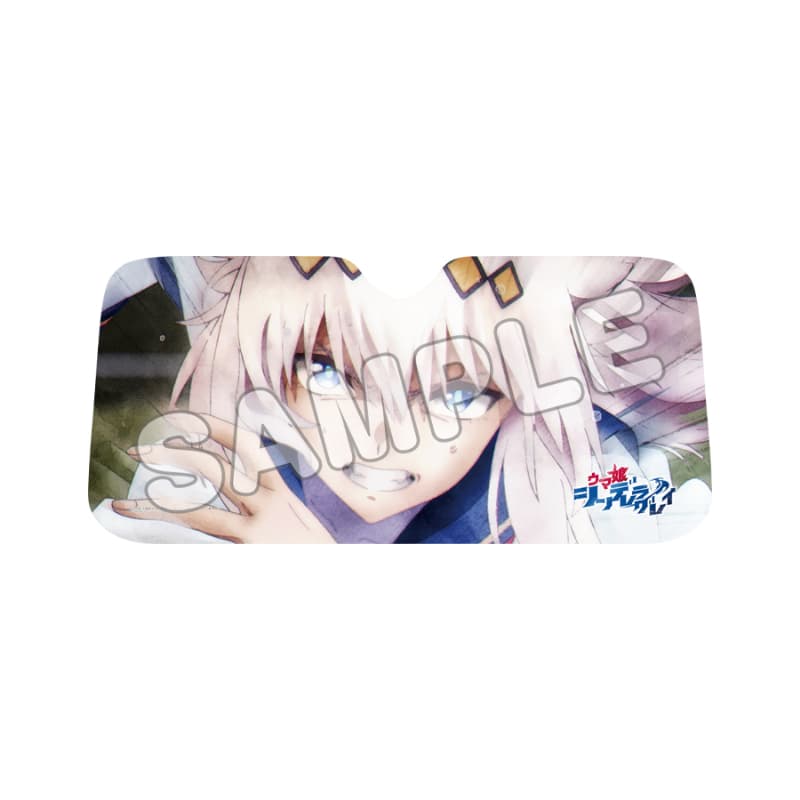 フロントシェードは、幅約120cm×丈約60cm。オグリキャップの表情を大きく配したデザインで、ビジュアルを正面から確認できる。