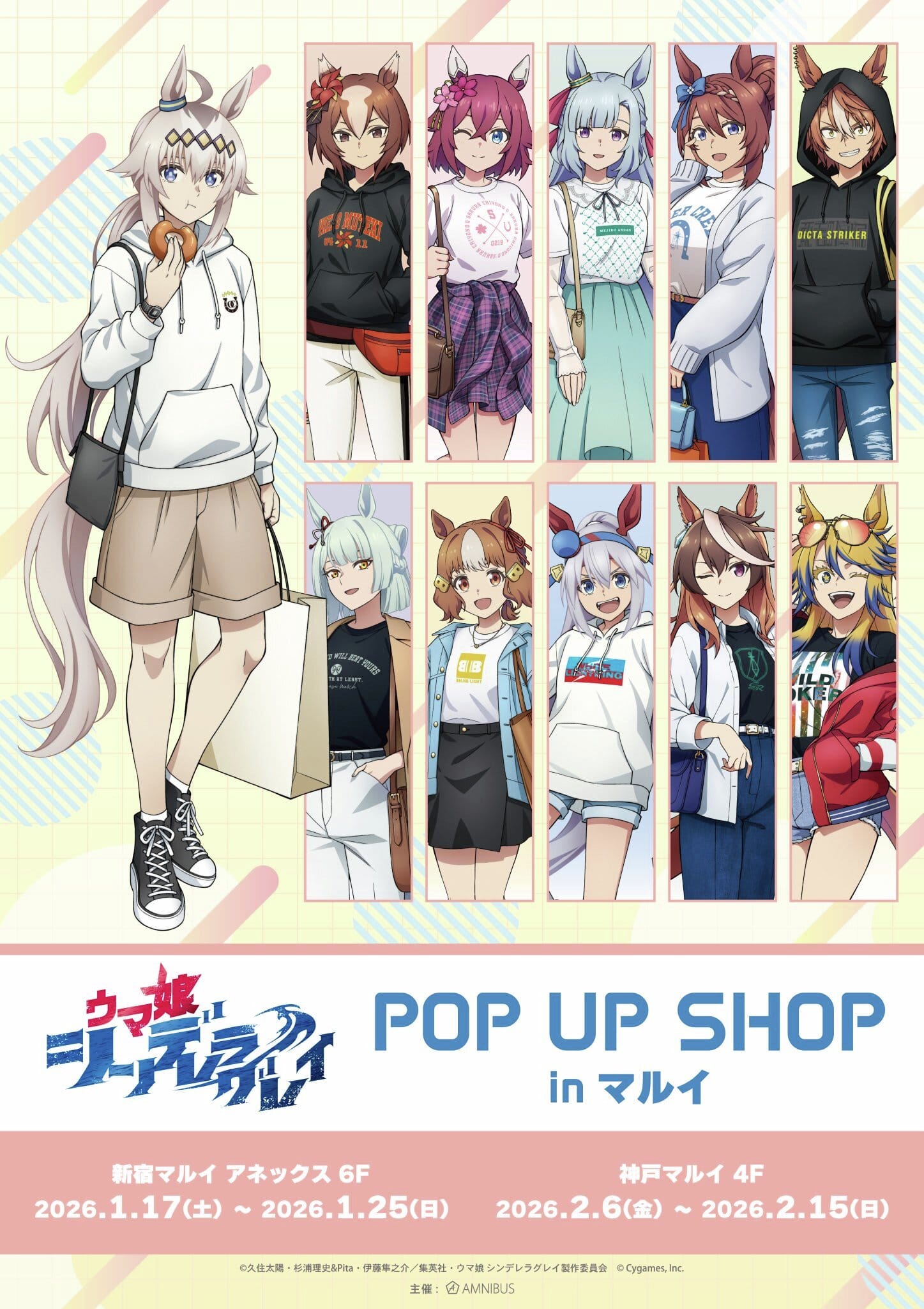 Cygames (サイゲームス) が贈るメディアミックスプロジェクト「ウマ娘 プリティーダービー」より、「久住太陽」先生によるスピンオフ漫画を原作とした大人気TVアニメ「ウマ娘 シンデレラグレイ (シングレ)」× 新宿マルイアネックス/神戸マルイにて、2026年1月17日よりポップアップストアが順次開催される。