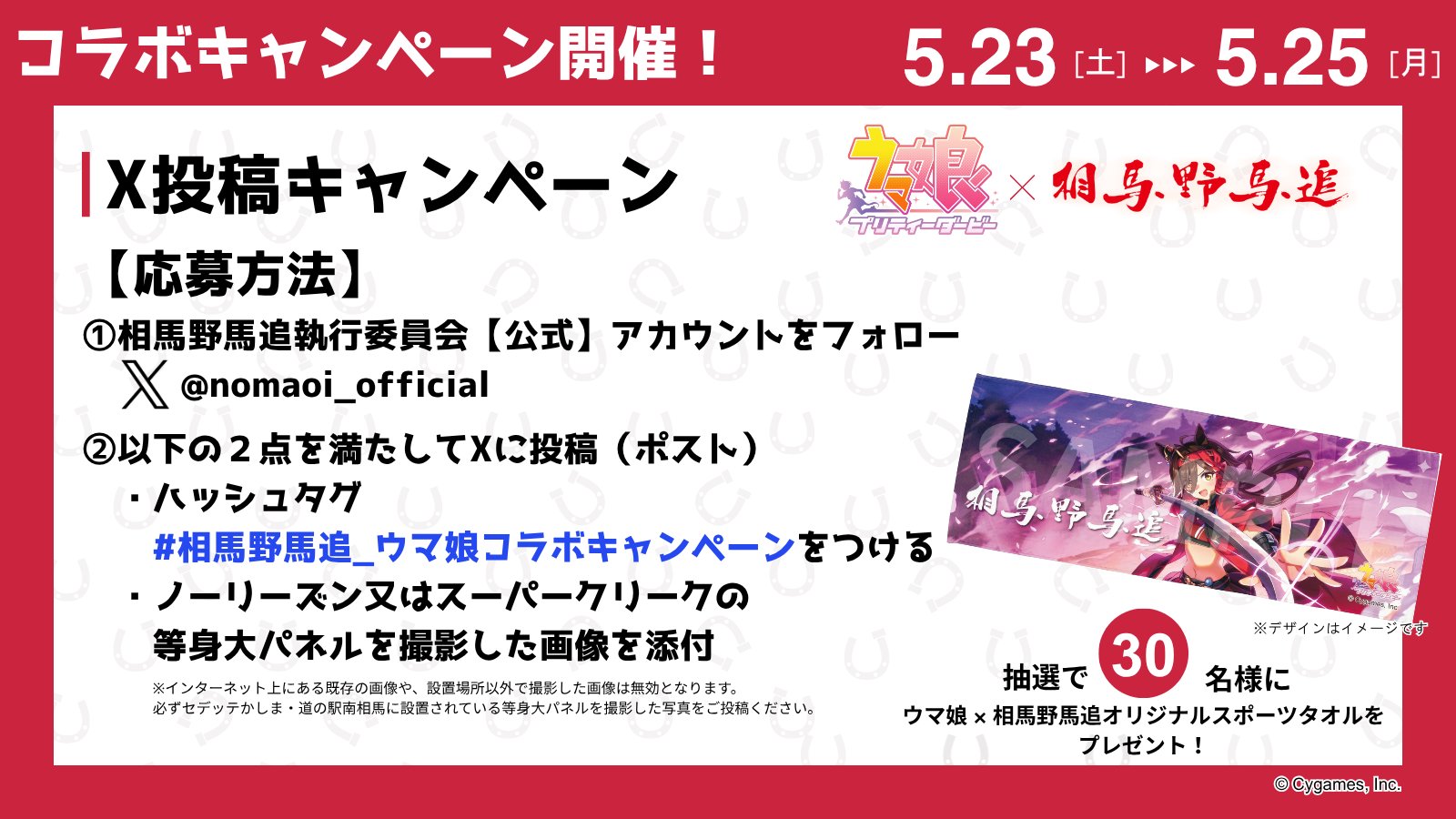 是非リプ欄をチェックしてくださいね!#相馬野馬追_ウマ娘コラボキャンペーン pic.twitter.com/r3wCzCDNX5— 相馬野馬追執行委員会【公式】🐴 (@nomaoi_official) April 27, 2026