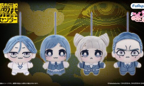 大人気ゲーム「都市伝説解体センター」より、廻谷渉、福来あざみ、ジャスミン、富入順蔵らの可愛いマスコットぬいぐるみが登場!