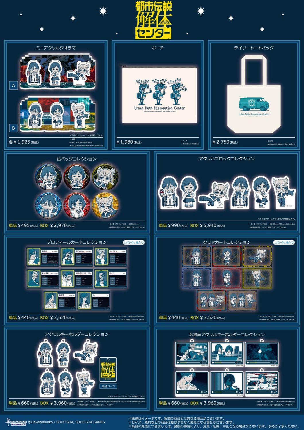日本ゲーム大賞2025優秀賞を受賞した、墓場文庫開発・集英社ゲームズ発売のミステリーアドベンチャーゲーム「都市伝説解体センター」のポップアップストアが、5都市(東京,大阪,愛知,福岡,北海道)にて2026年2月20日〜6月7日まで開催。廻屋 渉・ジャスミンらのイラストを使用した新作グッズが多数ラインナップ!