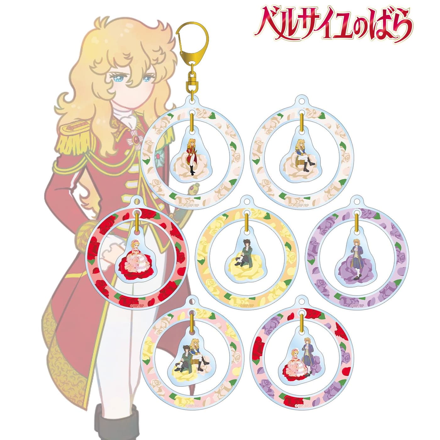 同シリーズからはゆらゆら揺れるアクリルキーホルダーやイラストカードも展開され、オスカルについては近衛連隊長時代の「赤い軍服」と衛兵隊時代の「青い軍服」の2種の姿が用意されている。