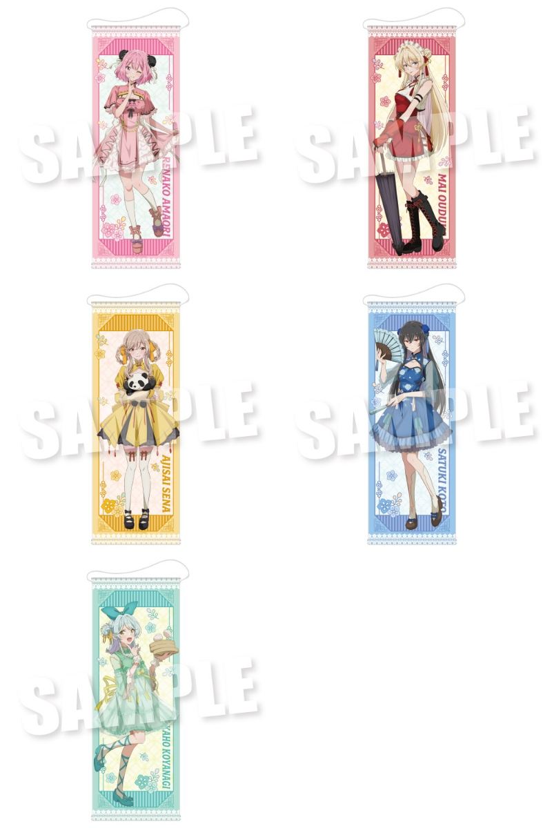 2025年11月11日まで開催された「アニメイト通販予約フェア」先行販売アイテムより、中国風ガーリー衣装に身を包んだ、れな子、真唯、紫陽花、紗月、香穂ら5人を描いた「缶バッジ」「クリアカード」「BIGホログラム缶バッジ」など全8種がラインナップ。