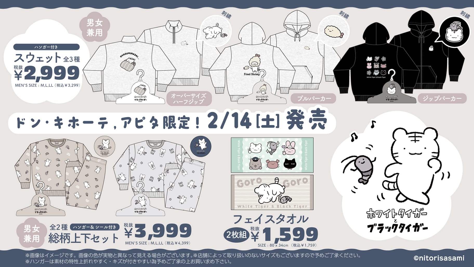 2026年2月14日より全国のドンキホーテ / アピタにて、「ホワイトタイガーとブラックタイガー」のアパレルアイテムを順次発売!