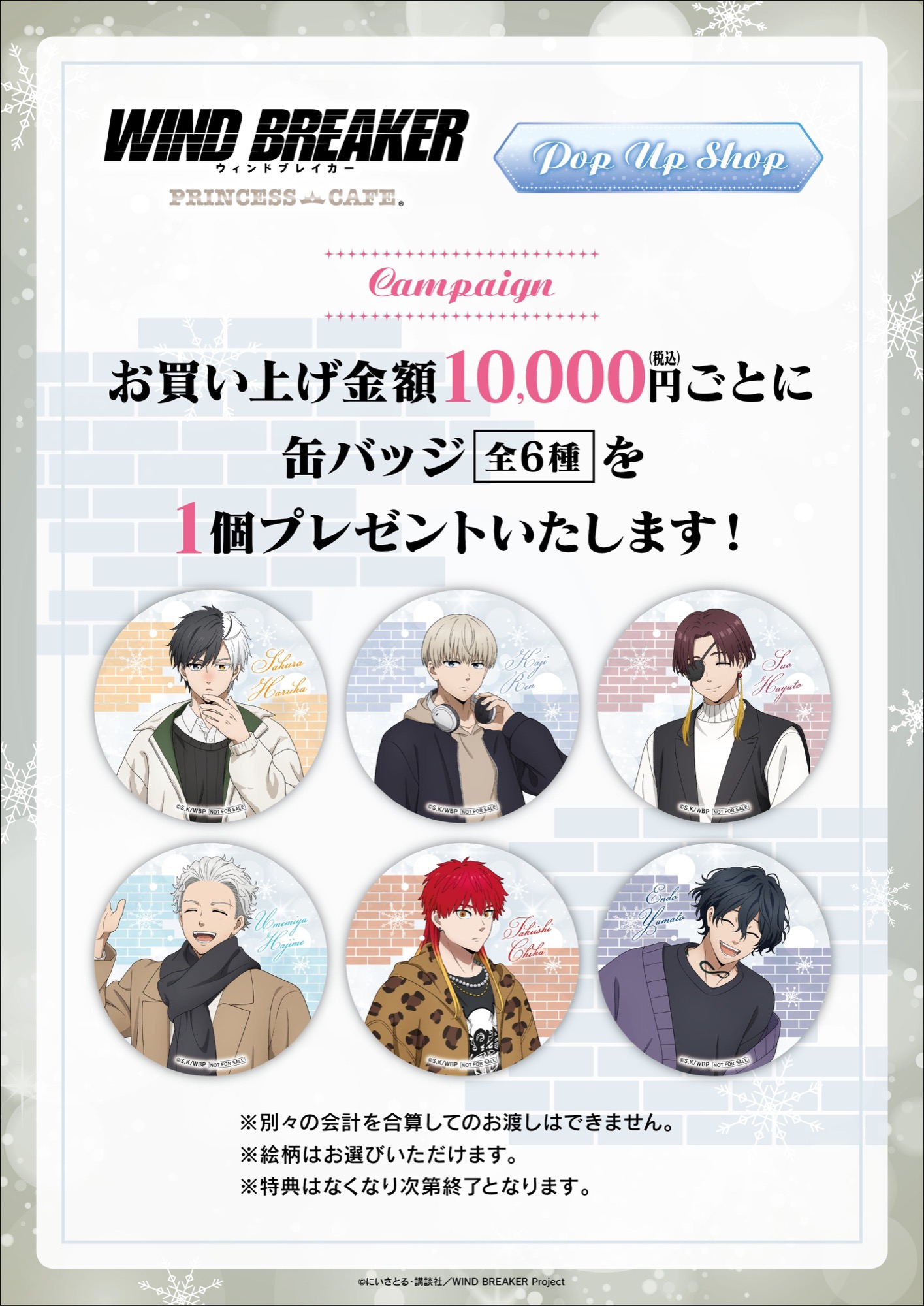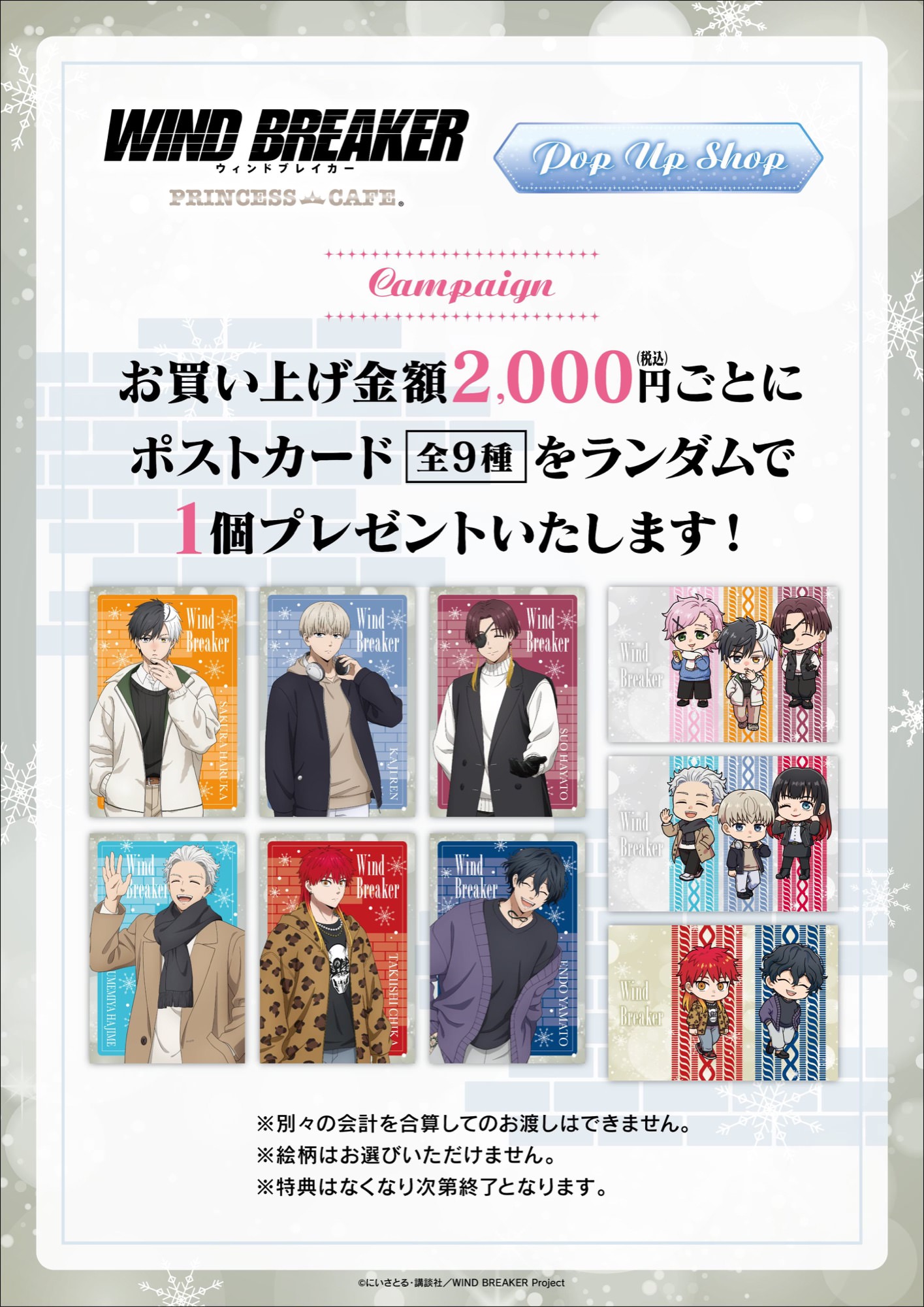 「WIND BREAKER」ポップアップストアにて、特典としてお買上金額2,000円(税込)ごとに「ポストカード (全9種)」をランダムに1枚プレゼント!