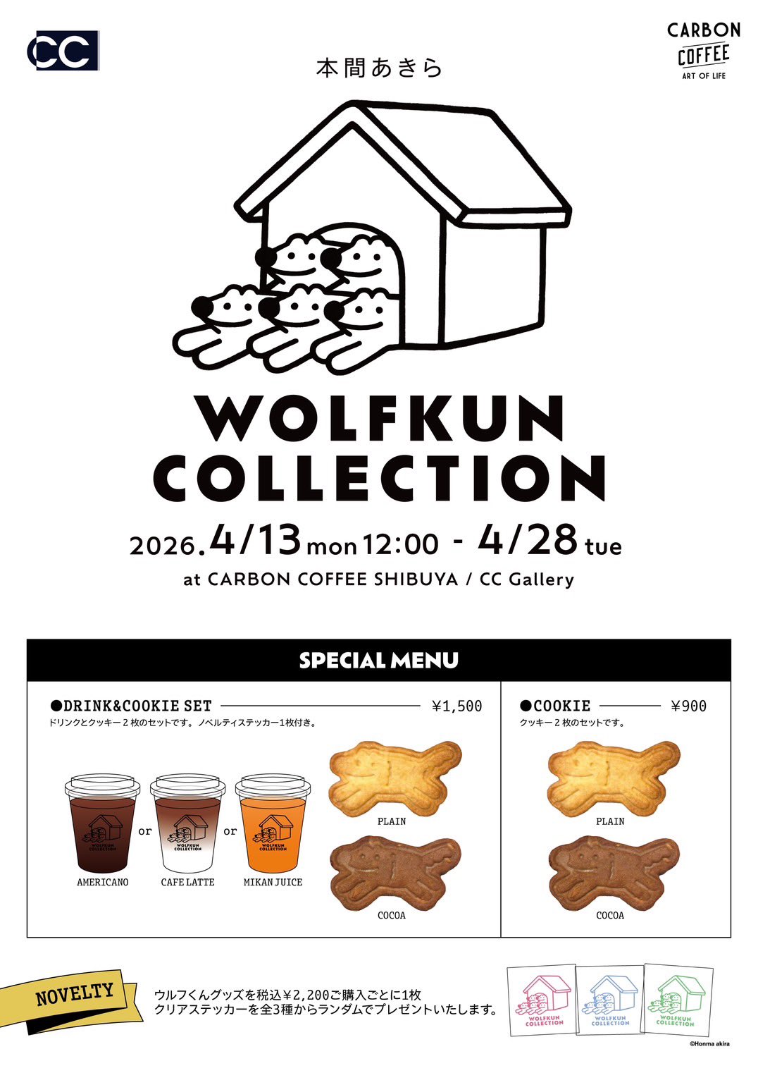 イラストレーターの「本間あきら」さんによる人気キャラクター「やさしいおおかみ ウルフくん」のポップアップストアが、「CARBON COFFEE SHIBUYA」にて2026年4月13日〜4月28日まで開催される。