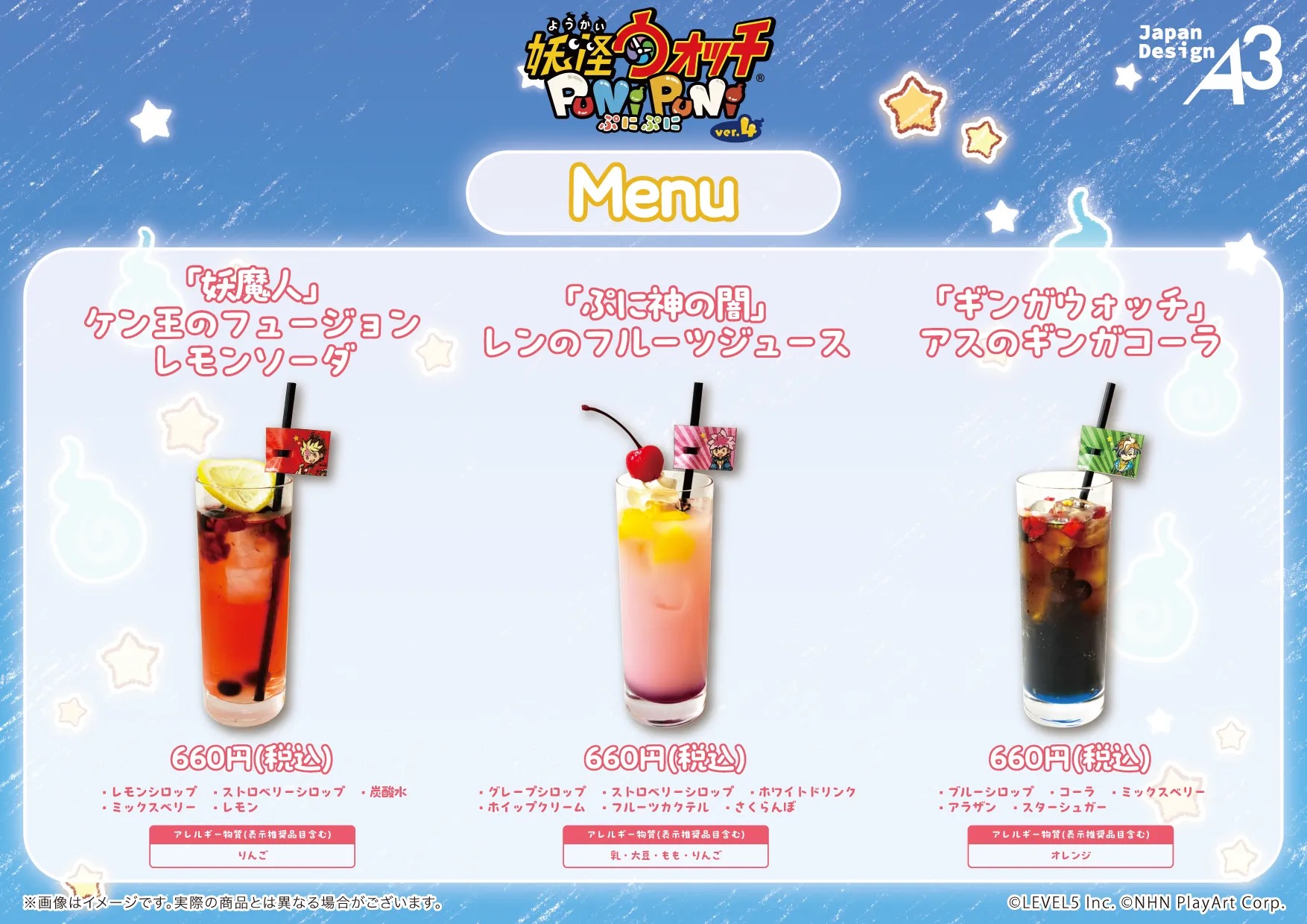 「妖怪ウォッチ ぷにぷに」コラボカフェでは、作品の世界観やキャラクターをイメージしたコラボメニュー、公式イラストとA3オリジナルデザインを使用した新作グッズが登場!