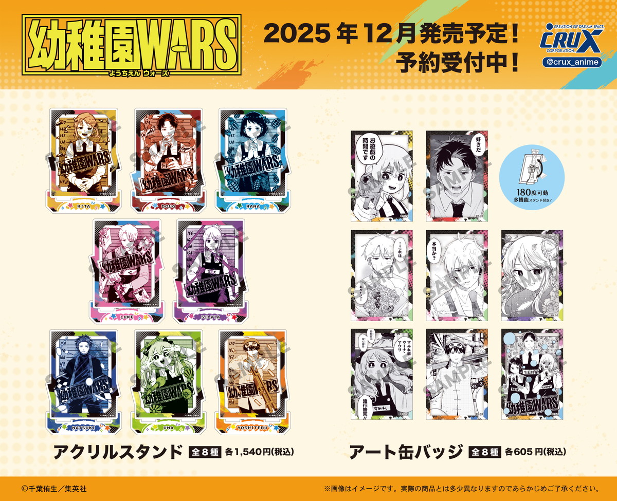 テレビアニメ化決定! 「少年ジャンプ+」で連載中、千葉侑生先生による大人気バイオレンス×ラブコメ!?漫画「幼稚園WARS」から、原作イラストを使用した新作グッズが2025年12月下旬に発売される。