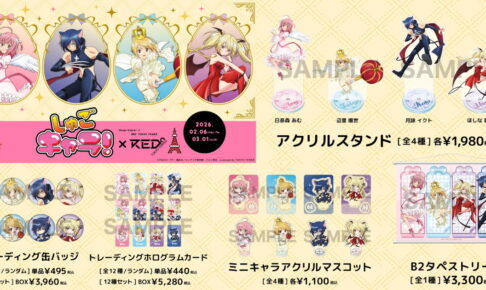華やかなスーツ姿がお似合いな仲間たちのグッズには、「缶バッジ」「アクリルキーホルダー」「ブロマイドコレクション」「アクリルスタンド」「クリアファイル」など全6種がラインナップ。