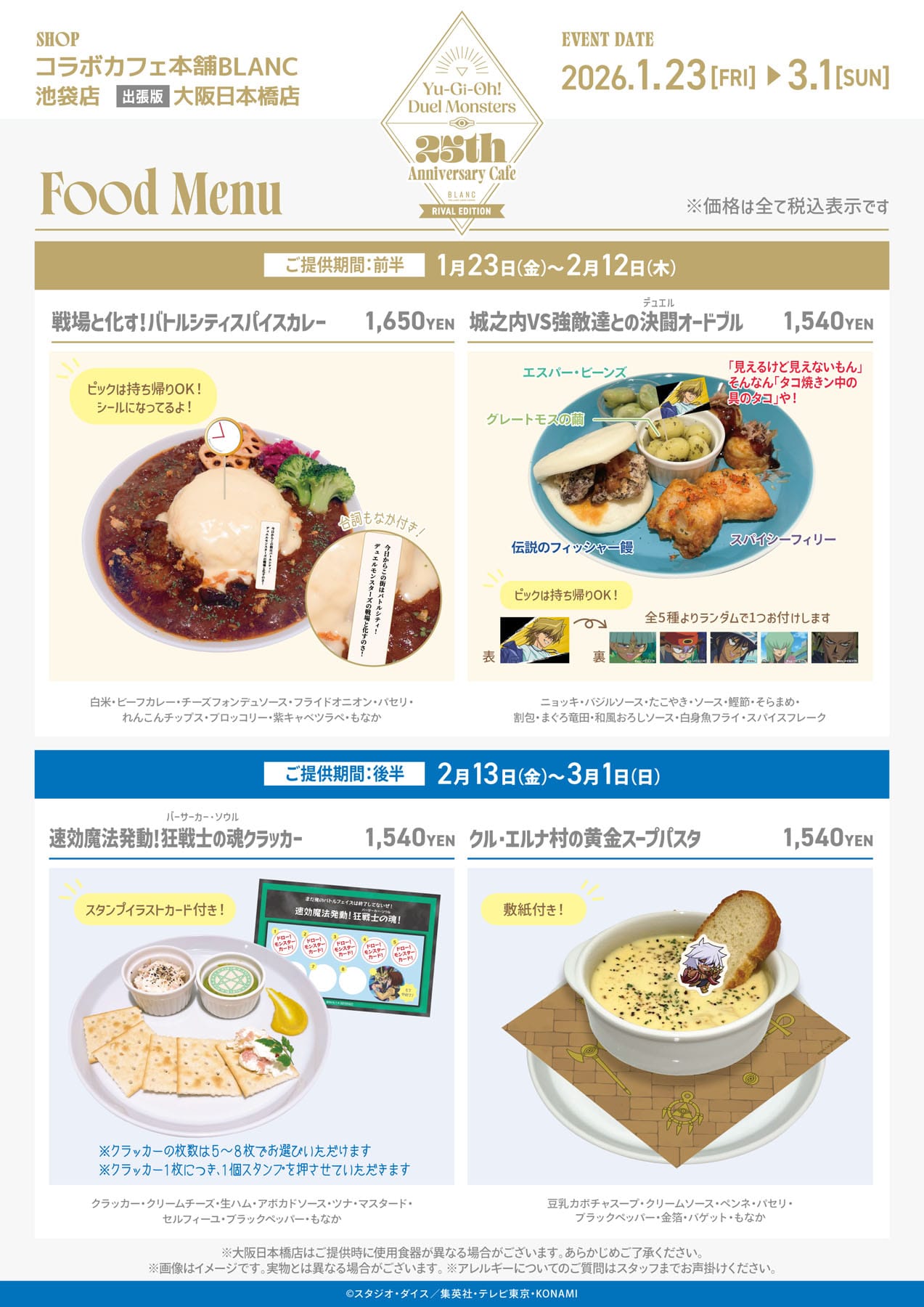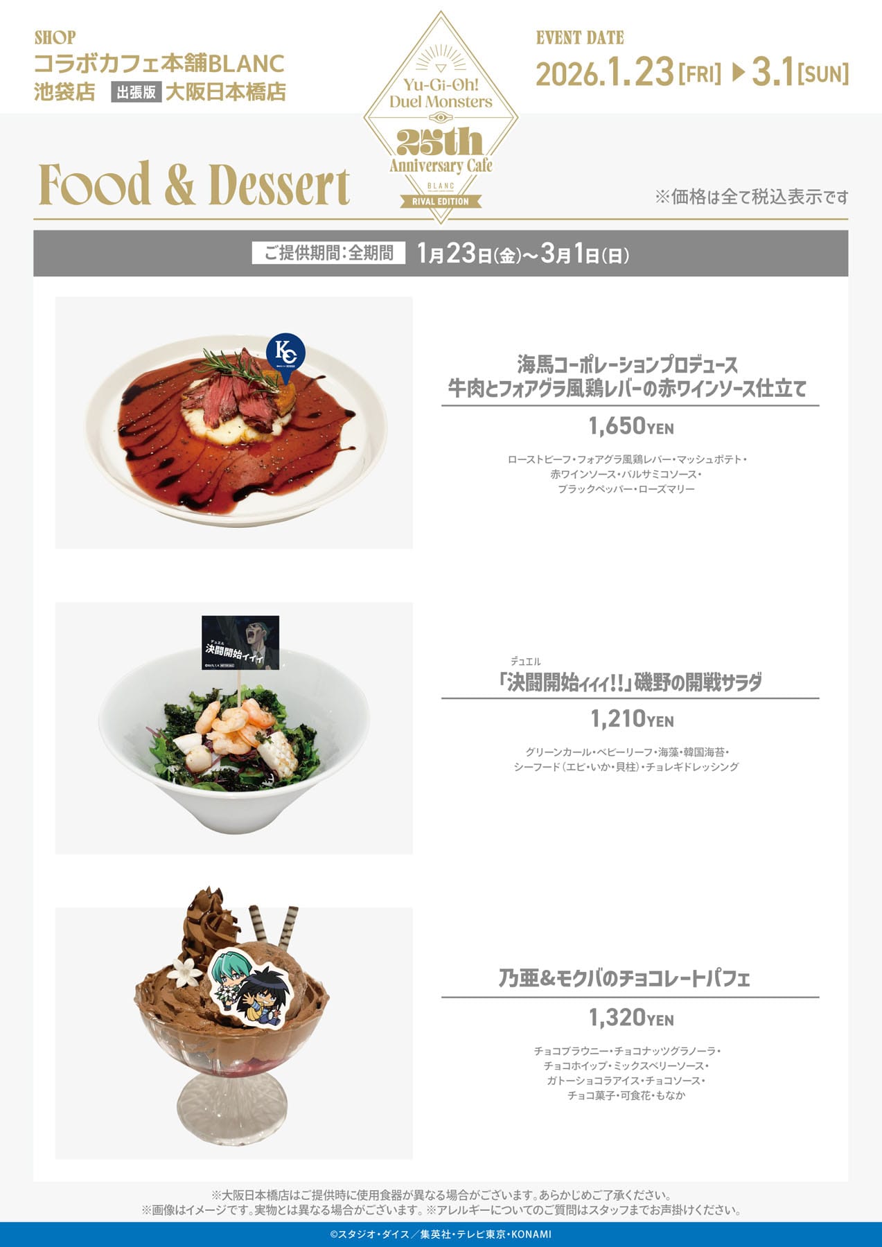 遊☆戯☆王デュエルモンスターズ × コラボカフェ本舗BLANCのメニュー