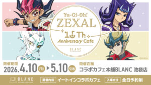 「遊☆戯☆王ZEXAL」の15周年を記念したコラボカフェが、2026年4月10日〜5月10日までコラボカフェ本舗BLANCにて開催!