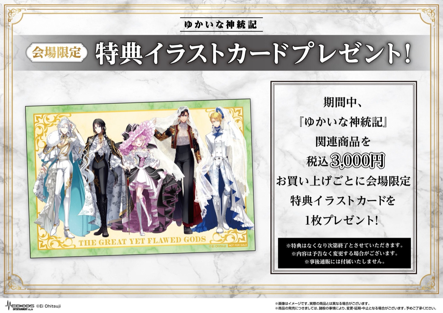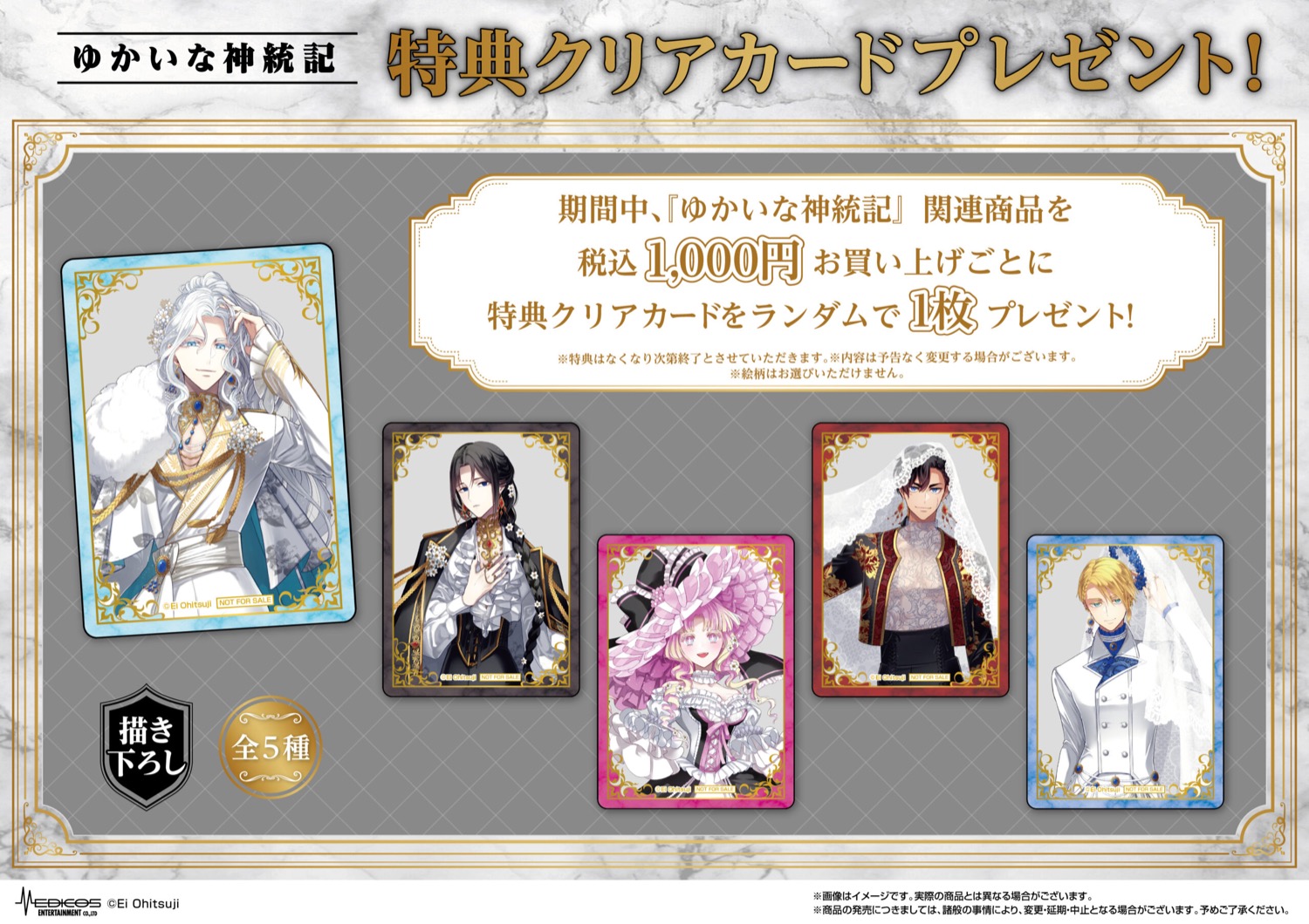 「ゆかいな神統記」ポップアップストアにて、グッズをお買い上げ1,000円毎に特典として「クリアカード 全5種」がランダムに1枚プレゼントされる。