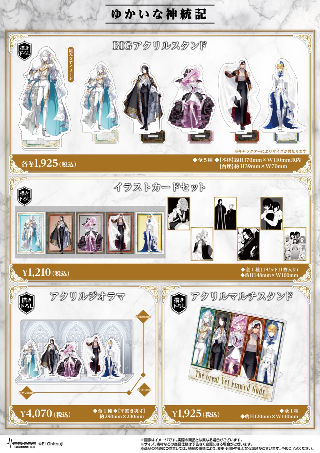 作者である尾羊 英先生による、ゼウス・ハーデスたちの描き下ろしイラストを使用した「BIGアクリルスタンド」「イラストカードセット」「アクリルジオラマ」などがラインナップする。