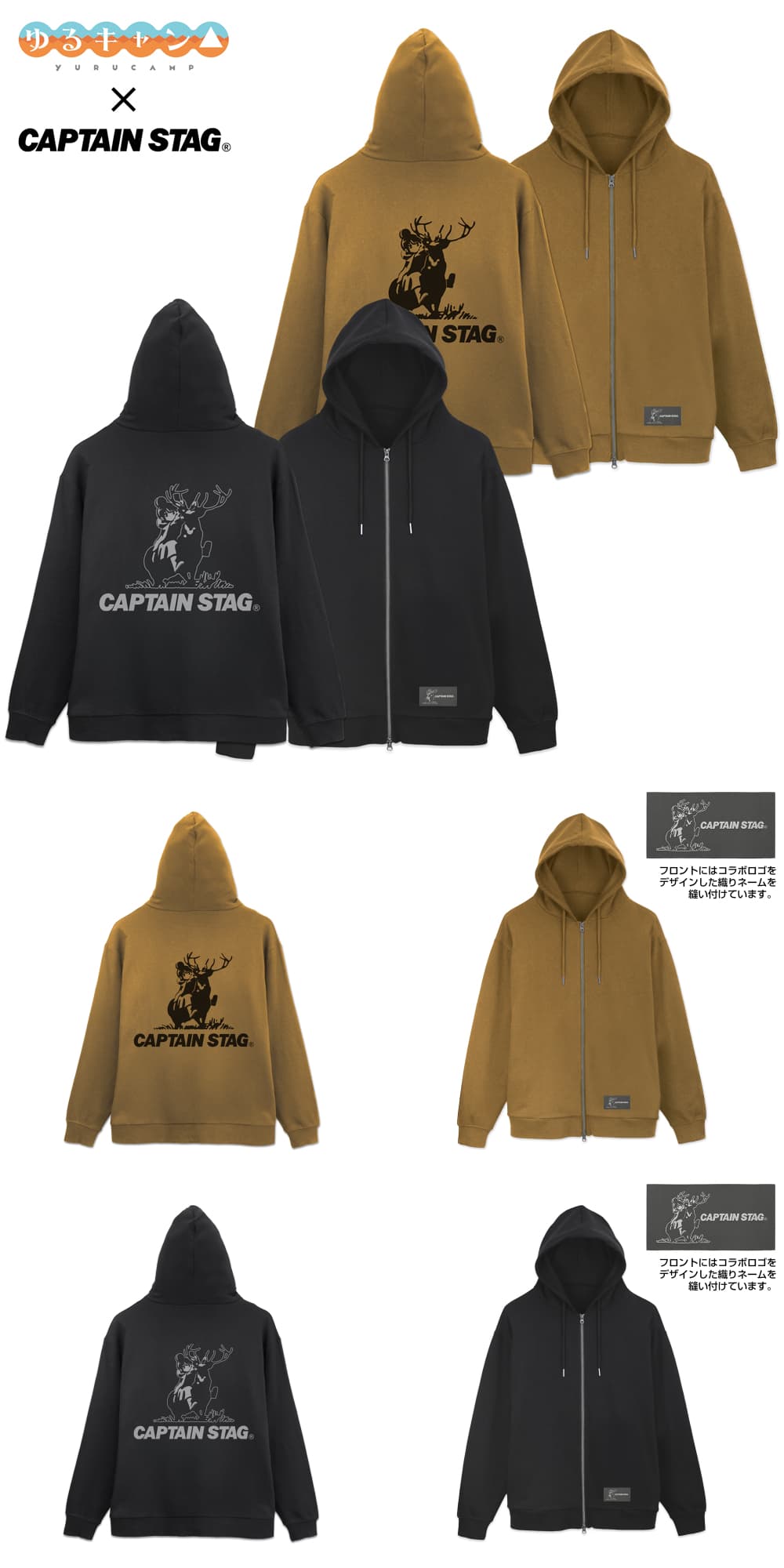 「ゆるキャン△×キャプテンスタッグ」ジップパーカー [コヨーテ / ブラック] 各8,800円(税込)