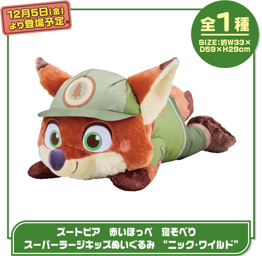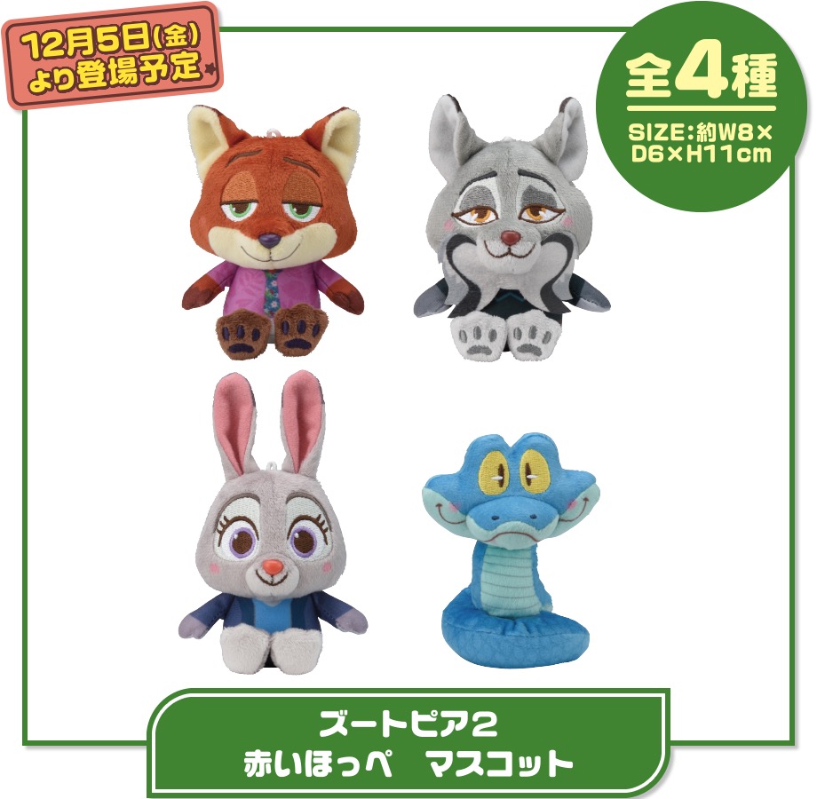 「ズートピア 赤いほっぺ 寝そべり スーパーラージキッズぬいぐるみ ジュディ」「ズートピア 赤いほっぺ 寝そべり スーパーラージキッズぬいぐるみ ニック」「ZOOTOPIA2 赤いほっぺ マスコット」がラインナップ!