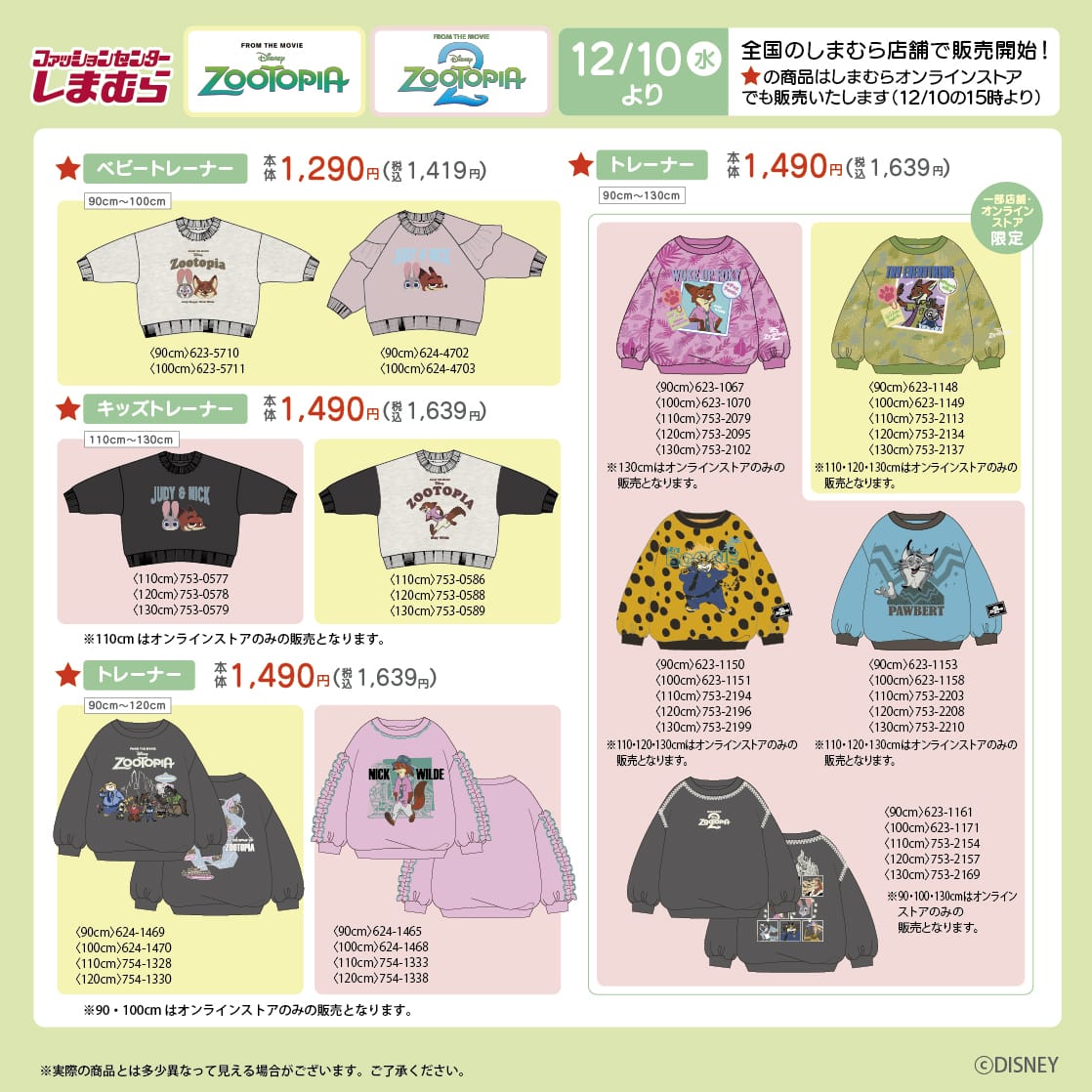 2025年12月10日より全国のファッションセンター「しまむら」と「しまむらオンライン」にて、「ズートピア2」のアパレルアイテムやコラボグッズを順次発売!