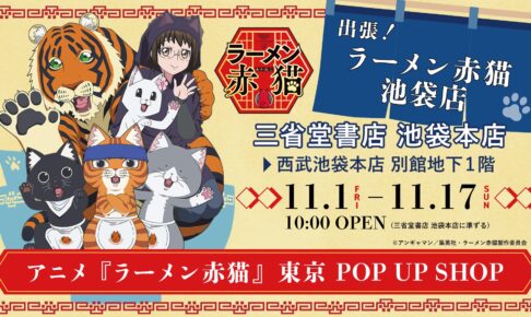 少年ジャンプ+(集英社)にて連載中、アンギャマン先生による人気漫画を原作としたアニメ「ラーメン赤猫」のポップアップストアが、三省堂書店 池袋本店 別館にて2024年11月1日〜11月18日まで開催される。大阪会場で売り切れてしまった商品や、リアル猫好きにも嬉しいグッズもラインナップ!