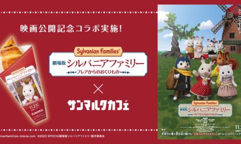 エポック社の人気シリーズ初の3DCG映画『劇場版 シルバニアファミリー フレアからのおくりもの』が全国映画館にて公開されることを記念し、サンマルクカフェ全国にて2023年11月16日〜12月15日までコラボキャンペーンが行われる。オリジナルデザインを使用した「チョコクロ」パッケージやノベルティーが登場!