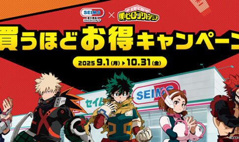 「堀越耕平」先生による大人気漫画を原作とするTVアニメ「僕のヒーローアカデミア (ヒロアカ)」× 富士薬品グループが運営するドラッグストア「セイムス」全国にて、2025年9月1日〜10月31日までコラボキャンペーン「セイムス×僕のヒーローアカデミア 買うほどお得キャンペーン」が開催される。