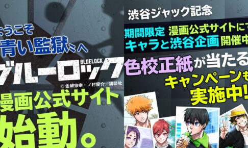 「金城宗幸 / ノ村優介」先生らによる論理的エゴサッカー漫画「ブルーロック」の描き下ろしイラストを街頭や駅のホームに掲出するイベント「渋谷6大ジャック」が2021年10月16日から開催されることを記念し、同日にオープンした漫画公式サイトにて「色校正紙」が当たるキャンペーンを開催!