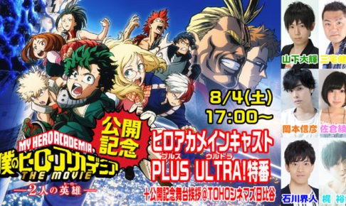 映画「僕のヒーローアカデミア THE MOVIE ~2人の英雄(ヒーロー)~」公開記念!8月4日(土) 17:00~ / 18:00~ に「ヒロアカ」メインキャスト出演の生特番配信!放送当日、17:00に第1部を配信、TVアニメ放送直後の18:00から第2部を配信!第2部の最後にはTOHOシネマズ日比谷で開催される舞台挨拶の模様も!