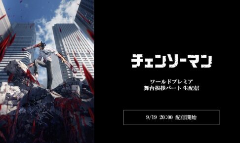 藤本タツキ先生による人気漫画を原作としたアニメ「チェンソーマン」のワールドプレミア舞台挨拶が、YouTubeのMAPPA公式チャンネルをはじめ、ABEMA・ニコニコ生放送などにて2022年9月19日20時より生配信されることが決定!さらに、超重大情報の発表も予定されている。