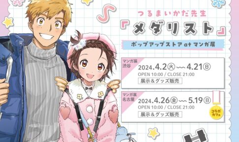 「つるまいかだ」先生による月刊アフタヌーンで連載中のフィギュアスケートマンガ「メダリスト」のポップアップストアが、マンガ展 東京/渋谷・愛知/名古屋にて2024年4月2日を皮切りに開催される。「メダリスト」ポップアップストアでは、グッズ販売が実施されるほか展示・コラボカフェもあわせて開催される。