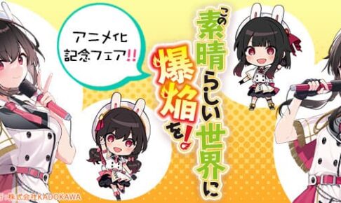 暁なつめ先生による人気ライトノベル「この素晴らしい世界に祝福を! (このすば)」のスピンオフ小説を原作とする2023年春アニメ「この素晴らしい世界に爆焔を!」から、紅魔族の少女”めぐみん”と”ゆんゆん”の描き下ろし「アイドル衣装 Ver.」イラストを使用したアニメ化記念フェアグッズが2023年6月に発売される。