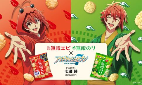 バンダイナムコオンラインが手掛ける人気スマホ向けゲーム「アイドリッシュセブン」の、小鳥遊事務所に所属するアイドルグループ「IDOLiSH7」のセンター「七瀬陸」が、亀田製菓の大人気商品『無限エビ』『無限のり』アンバサダーに就任!「七瀬陸」が“エビエビパーカー”・“のりのり浴衣”に見を包む描き下ろしイラスト解禁!