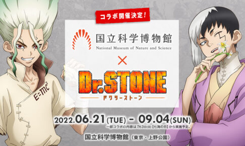 稲垣理一郎 / Boichi 両先生による人気漫画を原作としたTVアニメ「Dr.STONE (ドクターストーン)」× 東京・上野の国立科学博物館 (かはく) によるコラボイベントが、2022年6月21日〜9月4日までの期間限定で開催。『Dr.STONE』の世界を科学的に解説するミニ企画展が実施される。
