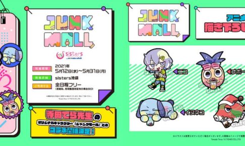 「チューリングラブ」や歌い手のまふまふさんのミュージックビデオでおなじみ、イラストレーター「寺田てら」さんのオリジナルキャラクター「ジャンクモール」 × 「sisters (シスターズ) 池袋 by アニメイトカフェ」による「ジャンクモール」コラボが2021年5月12日〜5月31日までの期間限定で開催!