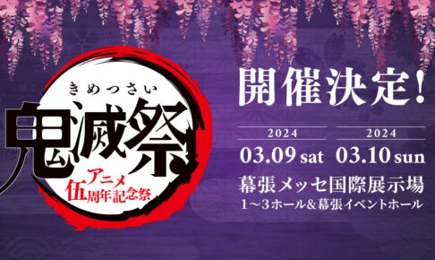 吾峠呼世晴先生による人気漫画を原作としたアニメ「鬼滅の刃」の放送5周年を記念して、アニメスペシャルイベント「鬼滅祭~アニメ伍周年記念祭~」が、幕張メッセ国際展示場にて、2024年3月9日〜3月10日までの2日間に渡り開催される。アニメの続きを描く第4期にあたる「鬼滅の刃 柱稽古編」は、2024年春に放送される。