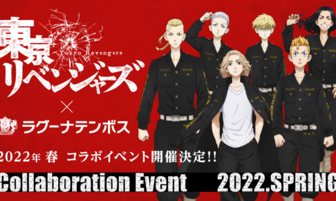 和久井健先生による人気漫画を原作としたTVアニメ「東京リベンジャーズ (東リベ)」× ラグーナテンボス愛知にて、2022年春より「東リべ」コラボイベント「東京卍會決起集会」開催決定!コラボ内容の詳細に先駆けてマイキー・ドラケン・場地さん・千冬・三ツ谷・タケミチたちが集合したコラボビジュアルが解禁された。