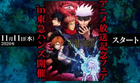週刊少年ジャンプにて連載中「芥見下々」先生による大人気漫画を原作とするTVアニメ「呪術廻戦」放送記念!「呪術廻戦」× 東急ハンズ全国3店舗(池袋・名古屋・梅田)にて2020年11月11日〜2021年2月4日までの期間限定で「呪術廻戦 アニメ放送記念フェア」開催!先行販売商品や限定グッズが多数登場!