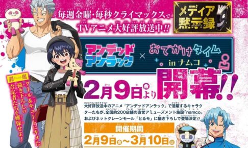 戸塚慶文先生による人気漫画を原作としたTVアニメ「アンデッドアンラック」× 全国約200店舗の「namco」によるコラボキャンペーン『アンデッドアンラック × おでかけタイム in ナムコ』が、2024年2月9日〜3月10日までの期間開催される。描き下ろしイラストを使用した景品や、オリジナルのベルティーが登場!