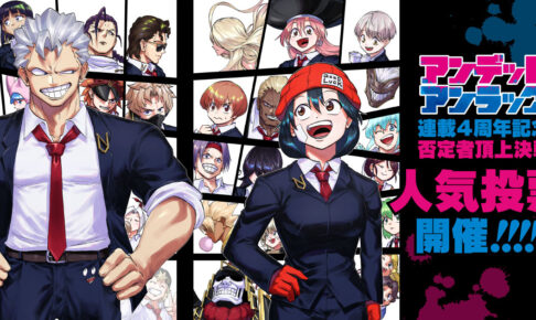 週刊少年ジャンプにて連載中、ファン待望のTVアニメも好評放送中の「戸塚慶文」先生による人気漫画「アンデッドアンラック」の連載4周年を記念し、2024年2月22日まで「アンデッドアンラック 連載4周年記念 否定者頂上決戦 人気投票」が開催される。投票をSNSでシェアすると抽選で豪華グッズをプレゼント!