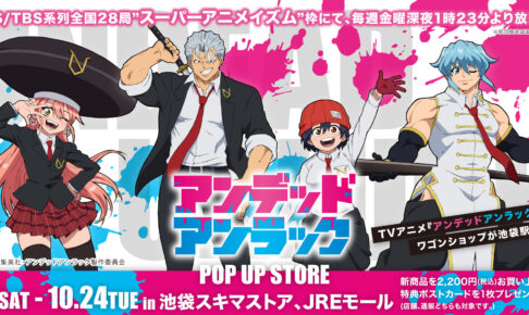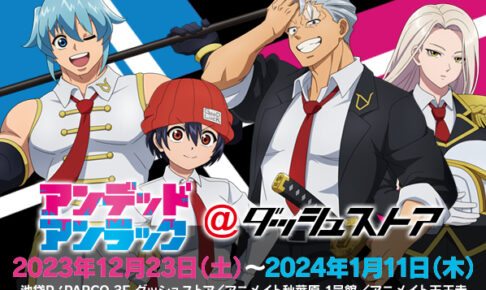 「戸塚慶文」先生による人気漫画を原作としたTVアニメ「アンデッドアンラック」のポップアップストアが、全国のダッシュストア3都市(池袋・秋葉原・大阪)にて2023年12月23日〜2024年1月11日まで開催される。描き下ろしイラストやアニメビジュアルを使用した新作グッズが多数ラインナップ!