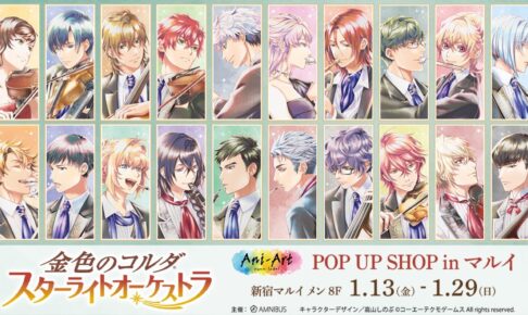 コーエーテクモゲームスによるスマホ用ゲーム「金色のコルダ スターライトオーケストラ」× AMNIBUS (アムニバス)のポップアップストアが、新宿マルイメンにて2023年1月13日〜1月29日まで開催される。総勢20キャラクターのAni-Art描き下ろしイラストを使用した新作グッズが多数ラインナップ!
