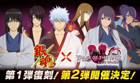 空知英秋先生による大人気“SF人情なんちゃって時代劇コメディー”を原作としたテレビアニメ「銀魂」× App Store /Google Play向けアプリ「テイルズ オブ ザ レイズ ラスト クレイドル」による、復刻コラボ & 第2弾コラボが開催決定!万屋の面々に加えて、新たに桂小太郎・高杉晋助の参加が発表。