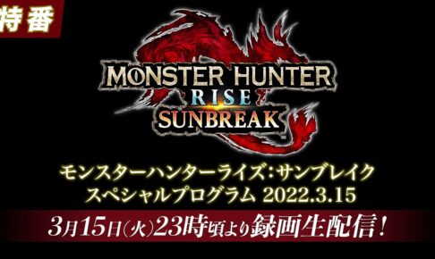 2022年夏発売予定の大人気ハンティングアクションゲーム最新作「モンスターハンターライズ : サンブレイク」の最新情報をお届けするスペシャルプログラムが、2022年3月15日23時よりYouTubeなどにて録画生配信される。ナレーターを諏訪部順一さんが担当し、最新映像や商品情報なども公開予定!