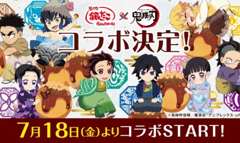 吾峠呼世晴先生による人気漫画を原作としたテレビアニメ「鬼滅の刃」吾峠呼世晴先生による大人気漫画を原作としたアニメ「鬼滅の刃」× 築地銀だこ全国にて、2024年4月26日よりコラボキャンペーンが開催。アニメ5周年のメモリアルコラボたこ焼きなどが販売される他、オリジナルグッズの受注販売も実施される。