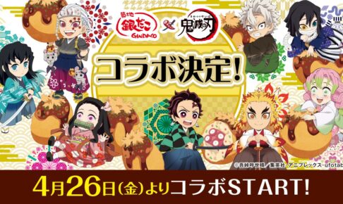吾峠呼世晴先生による大人気漫画を原作としたTVアニメ「鬼滅の刃」× 築地銀だこの一部店舗にてにて、2023年4月28日よりコラボキャンペーンが開催される。「鬼滅の刃」コラボでは、特製コラボたこ焼きやufotable描き下ろしイラストの限定デザインBOX入りパックの発売、ノベルティー配布などが行われる。